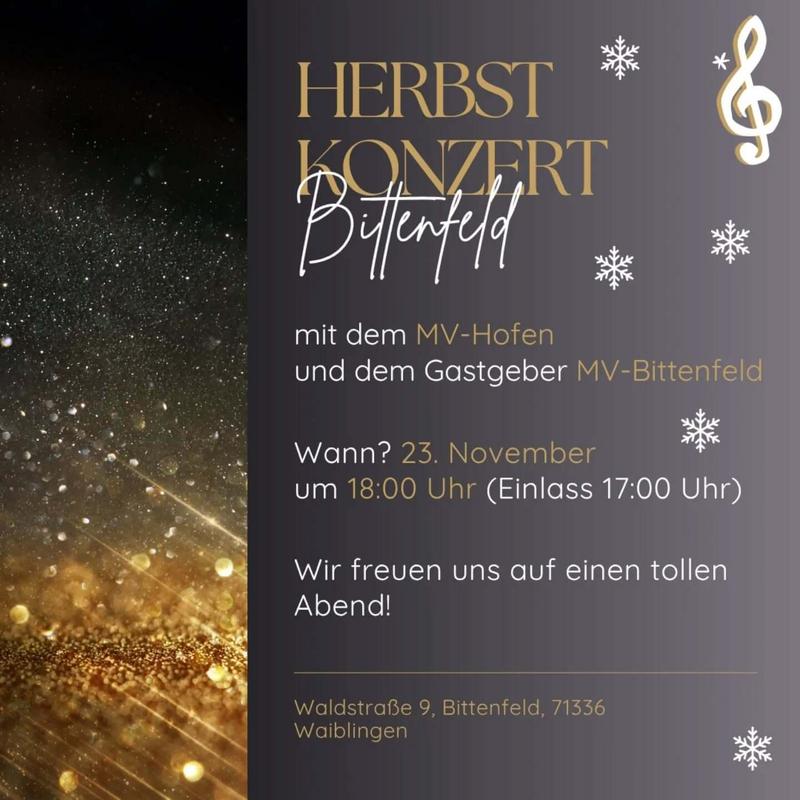 Die Konzertsaison hat begonnen! In diesem Jahr spielen wir nicht nur unser eigenes Konzert, sondern treten bereits am kommenden Sonntag als Gast beim Herbstkonzert des Musikvereins Bittenfeld auf.